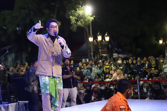 “Malam ini pertunjukkan yang luar biasa. Acaranya sangat keren, antusiasmenya sangat luar biasa karena didukung oleh Pemkot Surabaya yang sangat luar biasa juga. Yang pasti teman-teman yang datang kesini hadir dengan penuh cinta. Jadi suasana aman dan nyaman, nggak ada rusuh karena Surabaya selalu penuh cinta,” ujar alumnus SMPN 1 dan SMAN 5 Surabaya itu, Minggu (30/10).