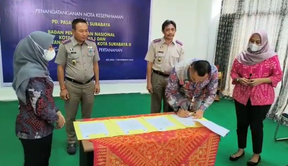 SURABAYATODAY.ID, SURABAYA – Perusahaan Daerah (PD) Pasar Surya Kota Surabaya menjalin Memorandum of Understanding (MoU) dengan Badan Pertanahan Nasional (BPN) Surabaya I dan II. Kerja sama ini sebagai bentuk komitmen Badan Usaha Milik Daerah (BUMD) Pemerintah Kota (Pemkot) Surabaya dalam mengamankan aset milik negara.