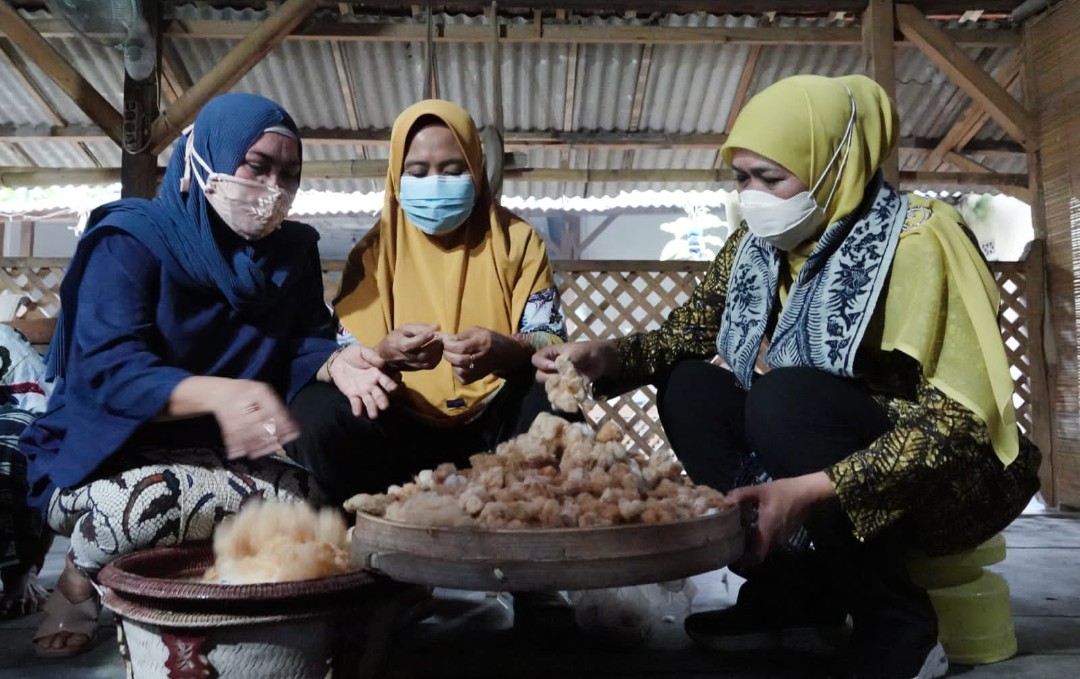 Gubernur Jatim Khofifah Indar Parawansa saat mengunjungi salah satu desa devisa.