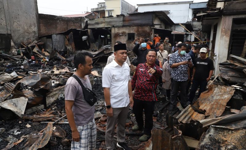 Wali Kota Surabaya Eri Cahyadi mendatangi lokasi musibah kebakaran rumah di Jalan Kedondong Kidul II, Kelurahan Tegalsari, Kecamatan Tegalsari.