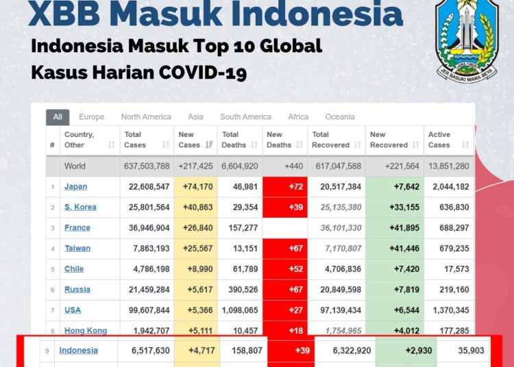Tak hanya di Jatim, peningkatan kasus Vovid-19 juga mengalami peningkatan secara nasional. Bahkan Indonesia masuk sepuluh besar peningkatan secara global dengan tambahan 4.707 kasus secara nasional dalam sehari.