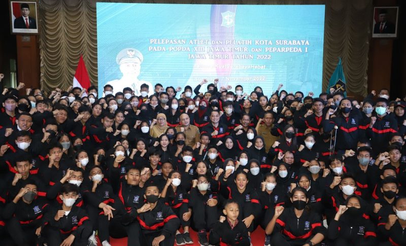 SURABAYATODAY.ID, SURABAYA – Wali Kota Surabaya Eri Cahyadi memberangkatkan 248 atlet dan 41 pelatih Kota Surabaya untuk mengikuti ajang Pekan Olahraga Pelajar Daerah (Popda) XIII Jawa Timur (Jatim) dan Pekan Paralimpik Daerah (Pepareda) I Jatim Tahun 2022. Pelepasan dilakukan di gedung Sawunggaling Pemerintah Kota (Pemkot) Surabaya, Senin (7/11/). Para atlet tersebut akan bertanding di Kabupaten Sidoarjo pada 8-16 November 2022.
