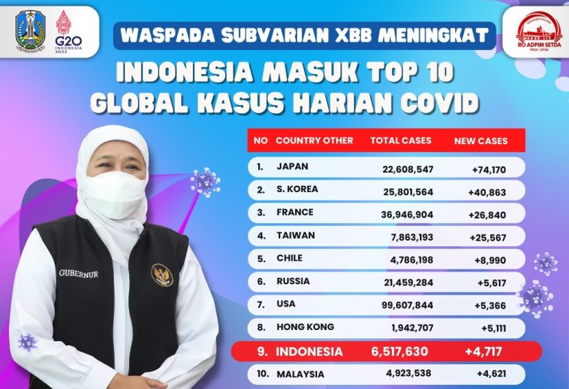 SURABAYATODAY.ID, SURABAYA – Tren kenaikan kasus positif Covid-19 terjadi di beberapa negara. Hal ini disebabkan oleh penyebaran Subvarian Omicron XBB.