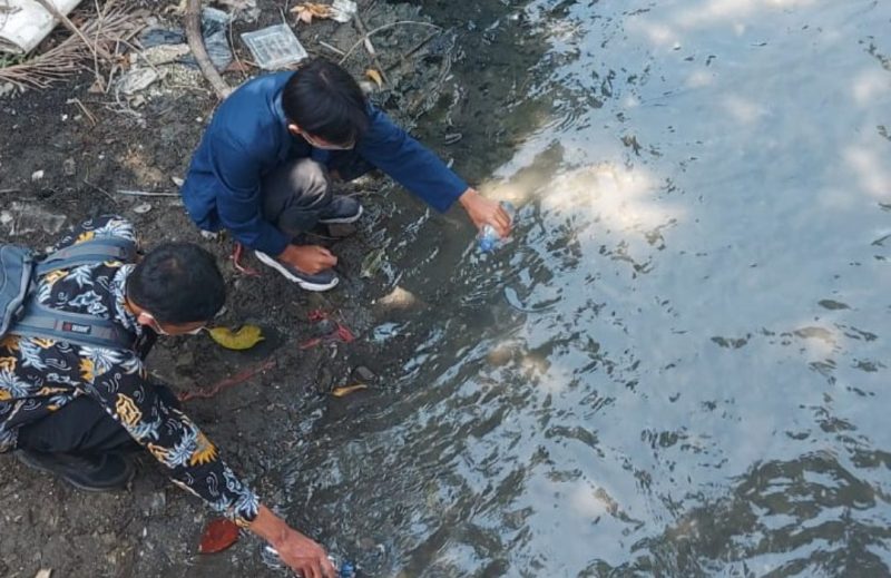 Pengambilan sampel pada aliran sungai untuk mengetahui seberapa jauh logam kromium (VI) mencemari aliran sungai Kalimas.