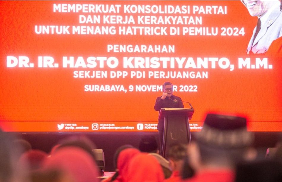 “Semua disiplin itu tecermin dalam konsolidasi yang tiada henti. Dan hari ini saya melihat bagaimana kader-kader di Surabaya begitu bersemangat, dan PDI Perjuangan dengan penuh keyakinan siap kembali mendapatkan kepercayaan rakyat pada 2024,” lanjut Hasto yang lantas disambut riuh tepuk tangan ribuan kader.