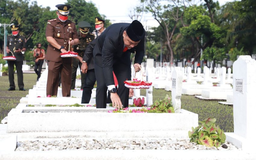 SURABAYATODAY.ID, SURABAYA – Pemkot Surabaya bersama Forum Komunikasi Daerah (Forkopimda) Kota Surabaya melaksanakan ziarah dan tabur bunga di makam pahlawan. Di antaranya, Taman Makam Pahlawan (TMP) di Jalan Kusuma Bangsa, Taman Makam Pahlawan WR. Soepratman di Jalan Kenjeran, dan Tempat Pemakaman Umum (TPU) Bung Tomo di Jalan Bung Tomo Kota Surabaya, Rabu (9/11).