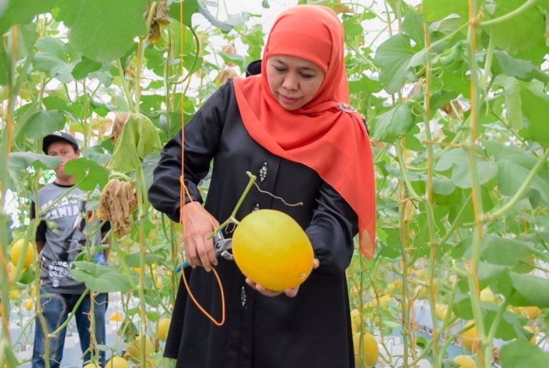 “Jadi ini bisa menjadi contoh bagi masyarakat, bagaimana kita bisa menanam berbagai tanaman holtikultura berbasis milenial. Termasuk mencoba menanam di pekarangan rumah kita, tidak harus melon bisa cabai atau tomat,” terangnya.