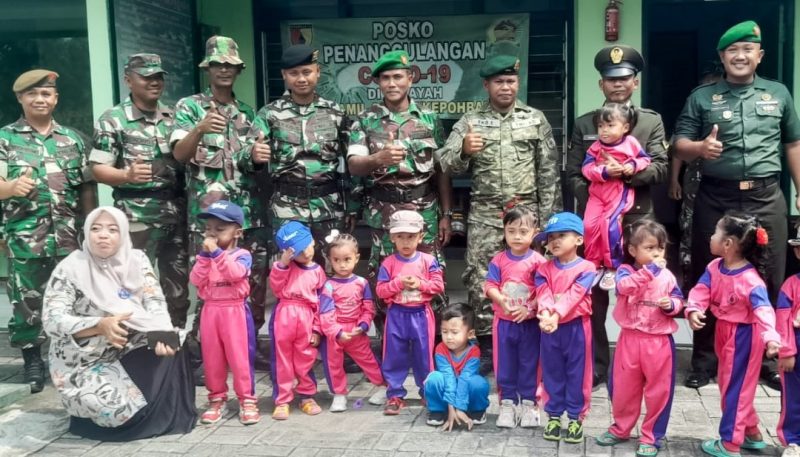 Komando Rayon Militer 0813-07/Kepohbaru, mendapat kunjungan puluhan anak-anak didik dari Pos Pendidikan Anak Usia Dini Cempaka Desa Sumberagung dan Taman Kanak-Kanak (TK) Al Majid Desa Brangkal, Kecamatan Kepohbaru, Bojonegoro.