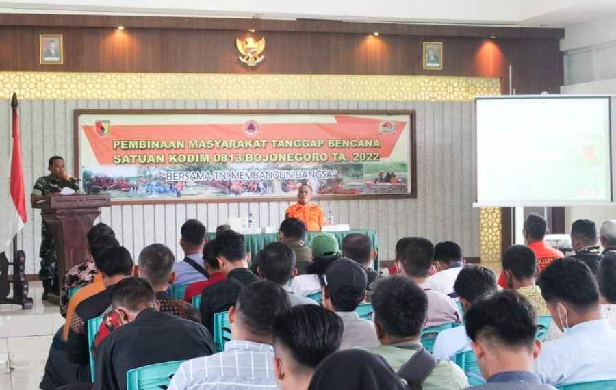 Kegiatan pembinaan masyarakat tanggap bencana yang dilaksanakan di gedung Ahmad Yani Makodim 0813 Bojonegoro.