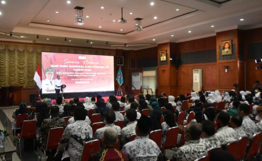 SURABAYATODAY.ID, SURABAYA – Memperingati Hari Guru Nasional dan HUT Ke 77 PGRI tahun 2022, Pemerintah Kota (Pemkot) Surabaya menggelar seminar nasional di Graha Sawunggaling, Jumat (18/11). Seminar bertema “Guru Bersinergi Wujudkan Pendidikan Surabaya yang Bermutu dan Humanis” itu, dibuka Wali Kota Eri Cahyadi.