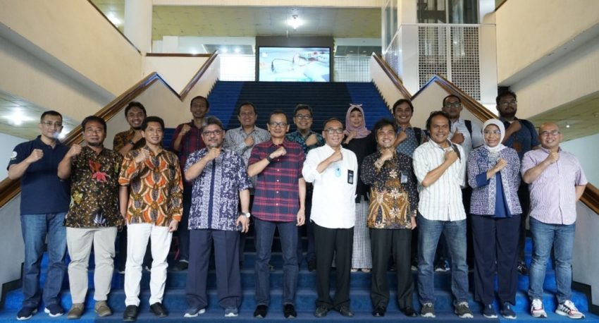 Foto bersama tim ITS dan PT Industri Kereta Api (INKA) usai melakukan penandatanganan Perjanjian Kerja Sama (PKS) untuk melanjutkan produksi BLiMP di gedung Rektorat ITS.