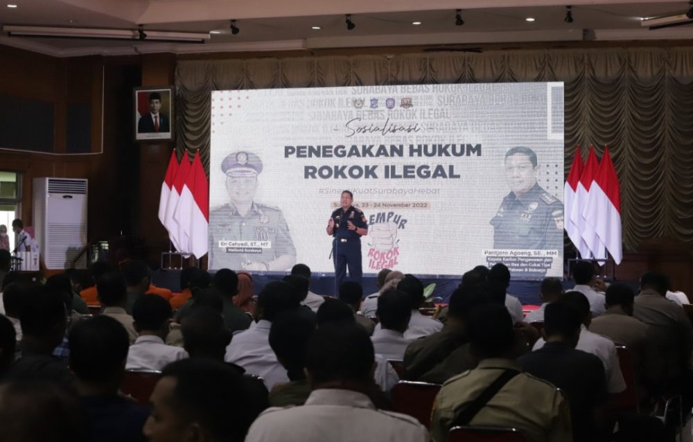 SURABAYATODAY.ID, SURABAYA – Kepala Kantor Pengawasan dan Pelayanan Bea dan Cukai (KPPBC) Tipe Madya Pabean B Sidoarjo, Pancoro Agung mengungkapkan, seiring meningkatnya harga bea dan cukai di tahun 2023, tentunya rokok ilegal akan semakin signifikan jumlahnya yang beredar. Karena itu, pencegahan peredaran dan penindakan rokok ilegal juga harus masif dilakukan bersama Pemkot Surabaya dan TNI/Polri, serta Kejaksaan.
