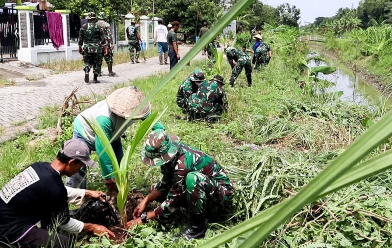SURABAYATODAY.ID, BOJONEGORO – Menjaga semangat kegotongroyongan, jajaran TNI di Kabupaten Bojonegoro, bersama pemerintah desa dan warga nasyarakat Desa Sukowati Kecamatan Kapas, bersinergi melaksanakan kegiatan penanaman pohon kelapa genjah. Ada sebanyak 350 pohon yang ditanam di sepanjang jalur kali Afvoer di desa setempat.