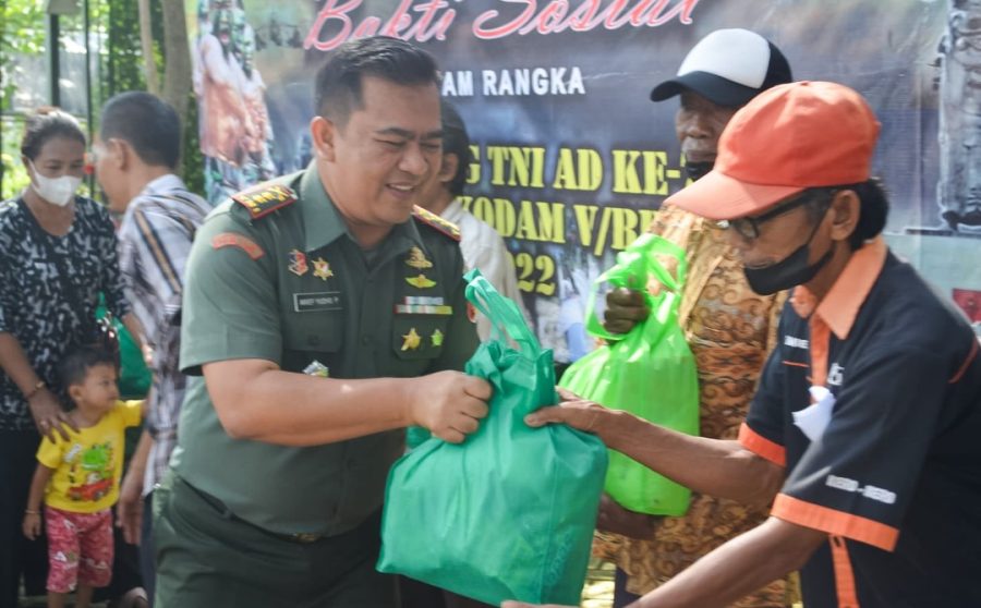 Pembagian sembako oleh Kodim Bojonegoro dalam rangka memperingati Hari Juang TNI AD ke- 77 dan Hari Ulang Tahun (HUT) ke- 74 Kodam V Brawijaya.