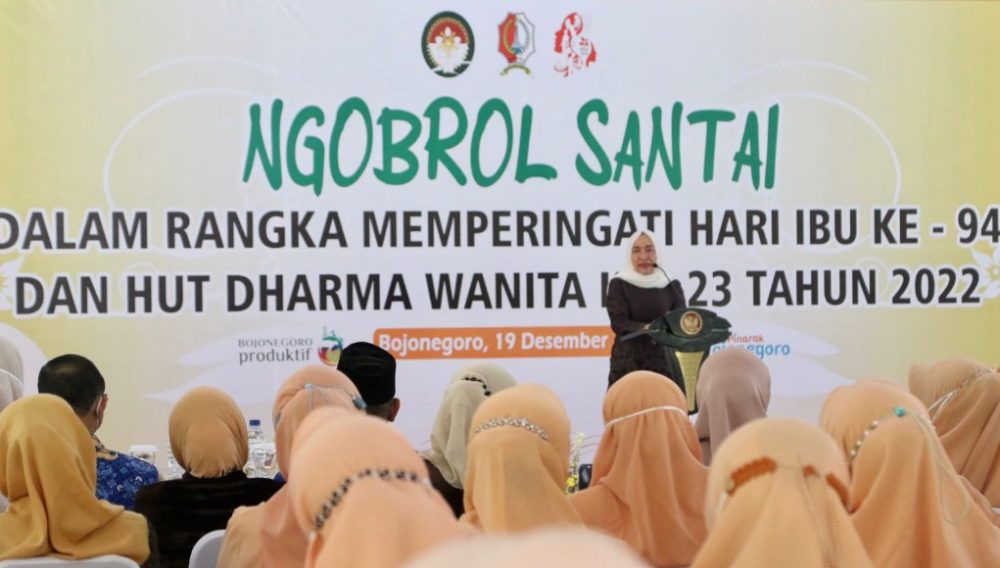 Sedangkan Ketua Dharma Wanita Persatuan Kabupaten Bojonegoro, Retno Joko Lukito mengatakan bahwa hari Ibu diperingati sebagai momentum yang mengangkat derajat perempuan. “Untuk itu kita harus terus belajar di segala bidang kehidupan karena perempuan sebagai penggerak keluarga agar berguna di masyarakat,” kata Retno Joko Lukito. (ST10)