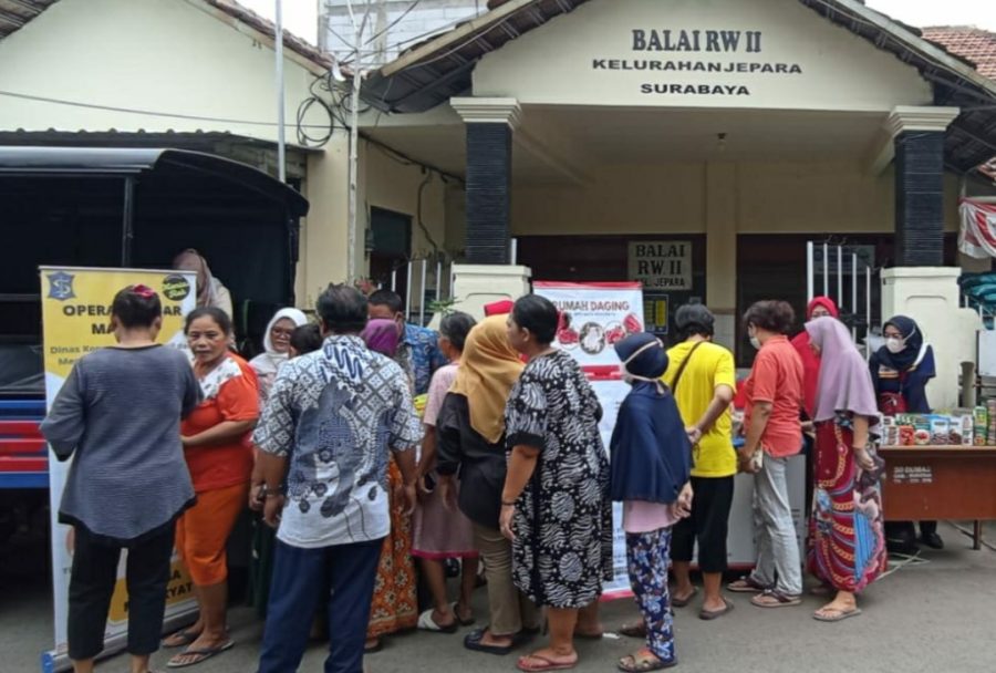 RPH Surabaya menggelar operasi pasar di sejumlah kecamatan di Surabaya.