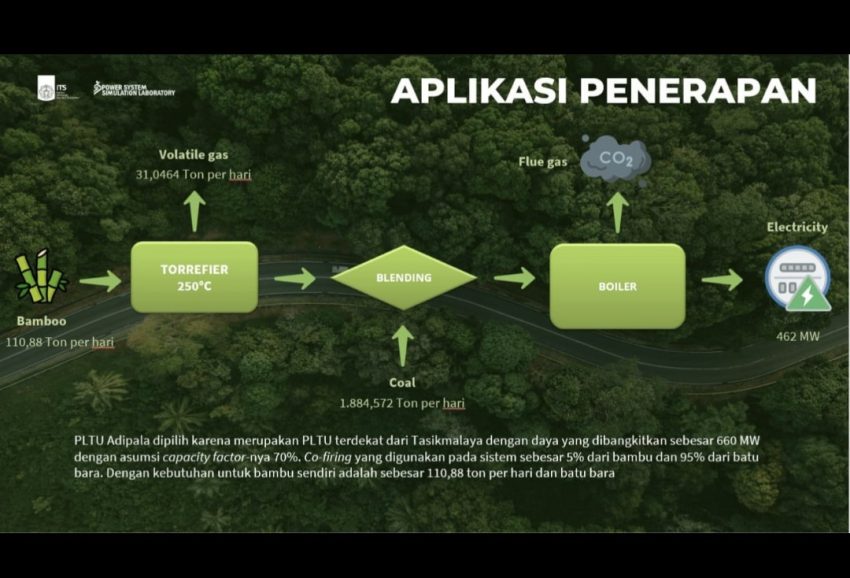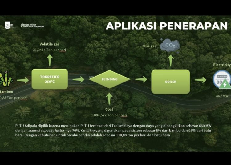 SURABAYATODAY.ID, SURABAYA – Mendukung komitmen pemerintah dalam mewujudkan Indonesia Net Zero Emission 2060, tiga mahasiswa dari Departemen Teknik Elektro, Institut Teknologi Sepuluh Nopember (ITS) berhasil menggagas inovasi baru. Yakni memanfaatkan potensi tanaman bambu sebagai bahan bakar pengganti batubara di Pembangkit Listrik Tenaga Uap (PLTU).