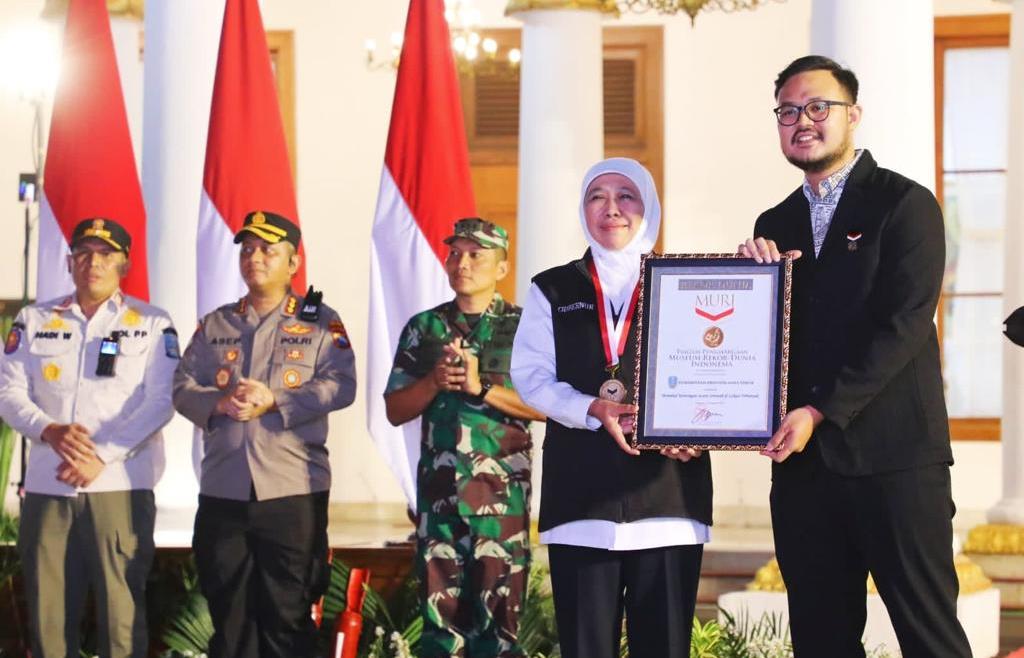 Atas rekor tersebut, Gubernur Jawa Timur Khofifah Indar Parawansa menerima piagam penghargaan dari MURI. Penghargaan Rekor Dunia MURI dan Rekor Indonesia MURI tersebut diserahkan oleh Customer Relation Manager Museum Rekor Dunia Indonesia, Lutfi Syah Pradana kepada Gubernur Khofifah dalam rangkaian Upacara Apel Patroli Sigap Jaga Lindungi Masyarakat Jawa Timur di malam tahun baru 2023 (SIJALINMAJATARU) di halaman gedung Negara Grahadi Surabaya, Sabtu (31/12) malam.