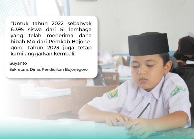 Sekretaris Dinas Pendidikan Bojonegoro Suyanto menuturkan bahwa pemberian hibah bagi siswa MA berlanjut hingga 2022. Dana hibah diperuntukkan bagi siswa yang ber-NIK Kabupaten Bojonegoro.