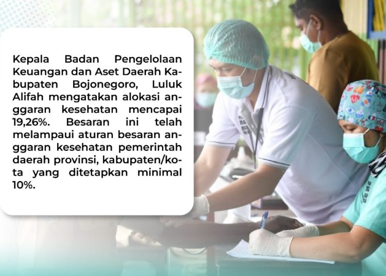 Kepala Badan Pengelolaan Keuangan dan Aset Daerah Kabupaten Bojonegoro, Luluk Alifah mengatakan alokasi anggaran kesehatan ini telah melampaui aturan besaran anggaran kesehatan pemerintah daerah provinsi. Bahwa anggaran kabupaten/kota ditetapkan minimal 10 persen dari APBD.