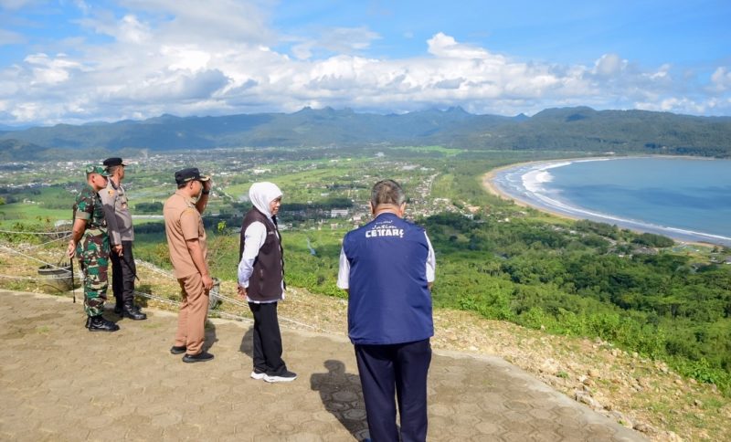 SURABAYATODAY.ID, PACITAN  – Gubernur Jawa Timur Khofifah Indar Parawansa dibuat takjub dengan keindahan Kabupaten Pacitan dari ketinggian Sentono Gentong di Desa Dadapan, Kecamatan Pringkuku, Selasa (10/1).