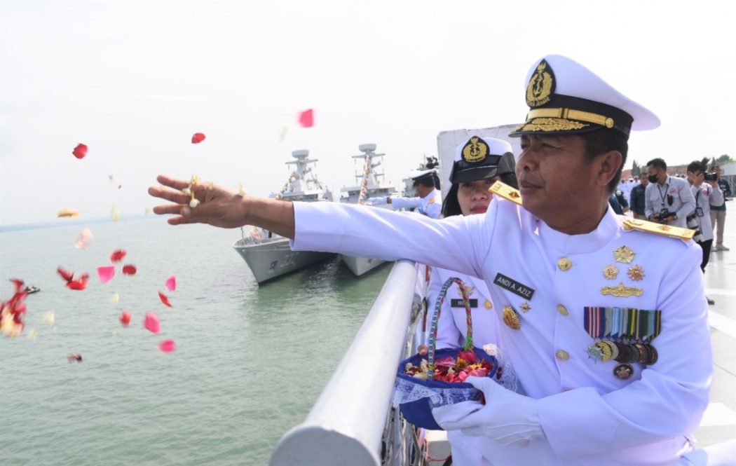 SURABAYATODAY.ID, SURABAYA – Dalam rangka memperingati Hari Dharma Samudera Tahun 2023, Pangkoarmada II Laksda TNI Dr. T.S.N.B. Hutabarat, M.M.S., yang diwakili oleh Kaskoarmada II Laksma TNI Andi Abdul Aziz, S.H., M.M., menghadiri upacara tabur bunga yang dilaksanakan di Geladak Heli KRI dr. Soeharso-990 yang sandar di Dermaga Ujung, Surabaya. Senin (16/01).