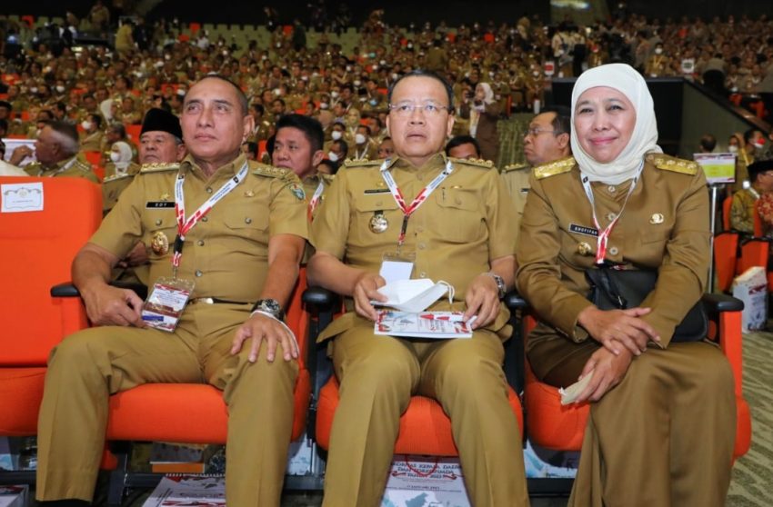 Gubernur Jatim Khofifah Indar Parawansa dalam Rapat Koordinasi Nasional (Rakornas) Kepala Daerah dan Forkopimda Tahun 2023 di Sentul International Convention Center, Bogor.