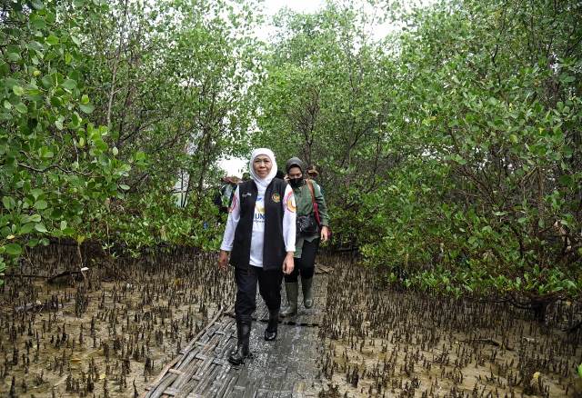 “Menanam mangrove adalah upaya kita bersama untuk mewujudkan Net Zero Emission di tahun 2060. Alhamdulillah saat ini hutan mangrove Jatim merupakan yang terluas di Pulau Jawa,” terang Khofifah, Kamis (19/1).