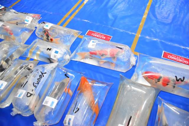 Beberapa ikan koi pada Beringin Koi Roadshow 2023 di Desa Sumberingin, Kabupaten Blitar.