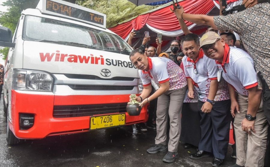 SURABAYATODAY.ID, SURABAYA – Wali Kota Surabaya Eri Cahyadi meresmikan 52 unit angkutan pengumpan (feeder), di halaman depan gedung Siola, Jalan Tunjungan, Kamis (2/3). Angkutan bernama Wira Wiri Suroboyo itu sebagai upaya penyediaan angkutan umum yang menjangkau lingkungan yang belum terlayani oleh Suroboyo Bus maupun Bus Trans Semanggi Surabaya.