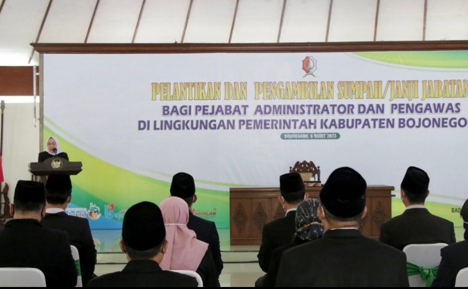 SURABAYATODAY.ID, BOJONEGORO – Bupati Bojonegoro Anna Mu”awanah melantik 27 pejabat lingkup Pemerintah Kabupaten Bojonegoro, Senin (6/3) di Pendopo Malowopati. Dalam acara yang turut diikuti oleh staf ahli dan asisten daerah, Bupati Anna meminta seluruh pejabat untuk netral di tahun politik.