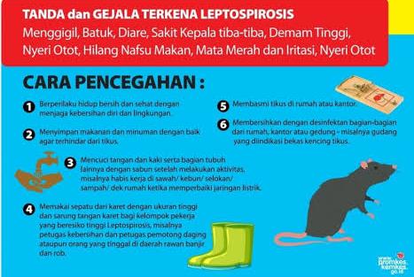 “Tak hanya itu, penularan Leptospirosis bisa terjadi melalui kontak erat dengan binatang ternak yang terinfeksi dan terjadi pada pekerjaan yang berpotensi kontak dengan sumber infeksi.” paparnya. (ST02)