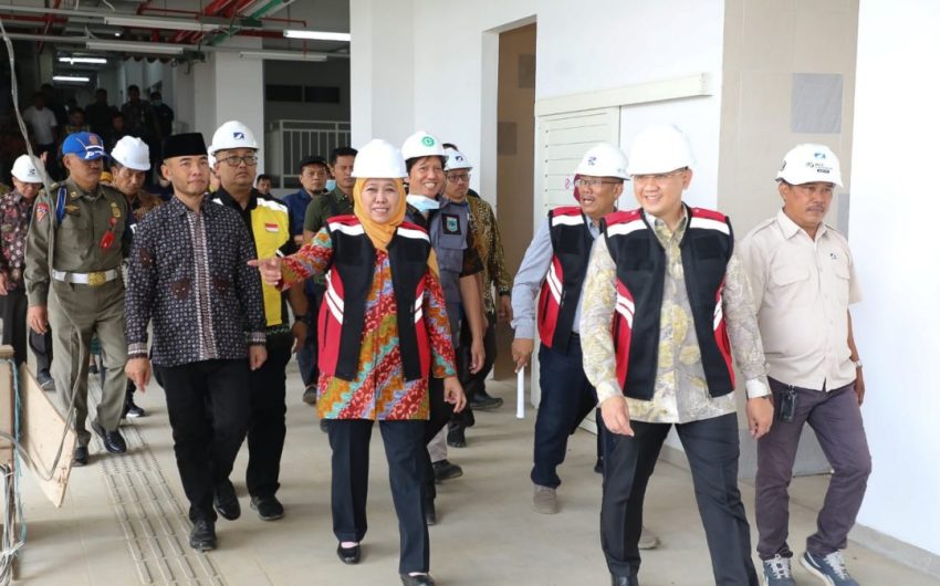 SURABAYATODAY.ID, BATU – Gubernur Jawa Timur Khofifah Indar Parawansa meninjau progres pembangunan Pasar Induk Kota Batu di Jalan Dewi Sartika Kota Batu, Sabtu (25/3). Pembangunan pasar ini dikerjakan oleh Balai Prasarana Permukiman Wilayah (BPPW) Jawa Timur, Direktorat Jenderal Cipta Karya, Kementerian PUPR melalui pendanaan APBN tahun 2021-2023 senilai Rp 168 miliar.