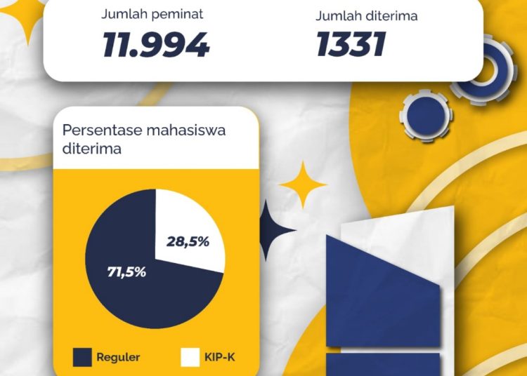 Unggul menuturkan bahwa jumlah kuota untuk jalur SNBP sendiri mengambil porsi 20 persen dari total kuota penerimaan mahasiswa baru ITS 2023. Lebih rinci, jumlah calon mahasiswa yang diterima lewat jalur SNBP sebanyak 28,5 persen calon mahasiswa penerima Kartu Indonesia Pintar Kuliah (KIP-K) dan 71,5 persen calon mahasiswa reguler.