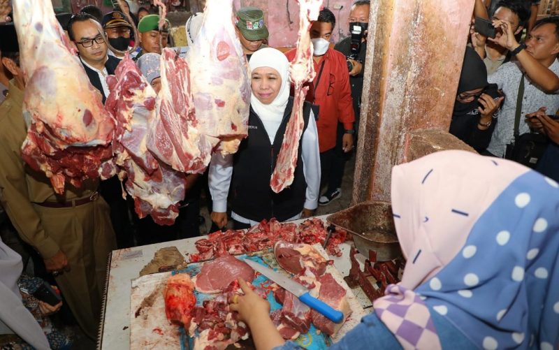 Selanjutnya, Khofifah juga bersyukur bahwa harga daging di Pasar ini jauh di bawah HET dengan kisaran Rp 100.000-110.000 jauh dibawah HET yang mencapai Rp 140.000,-.