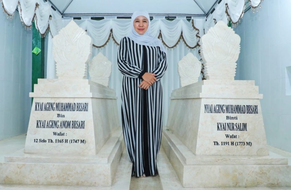 Gubernur Jatim Khofifah Indar Parawansa di makam Kiai Ageng Muhammad Besari dan istrinya.