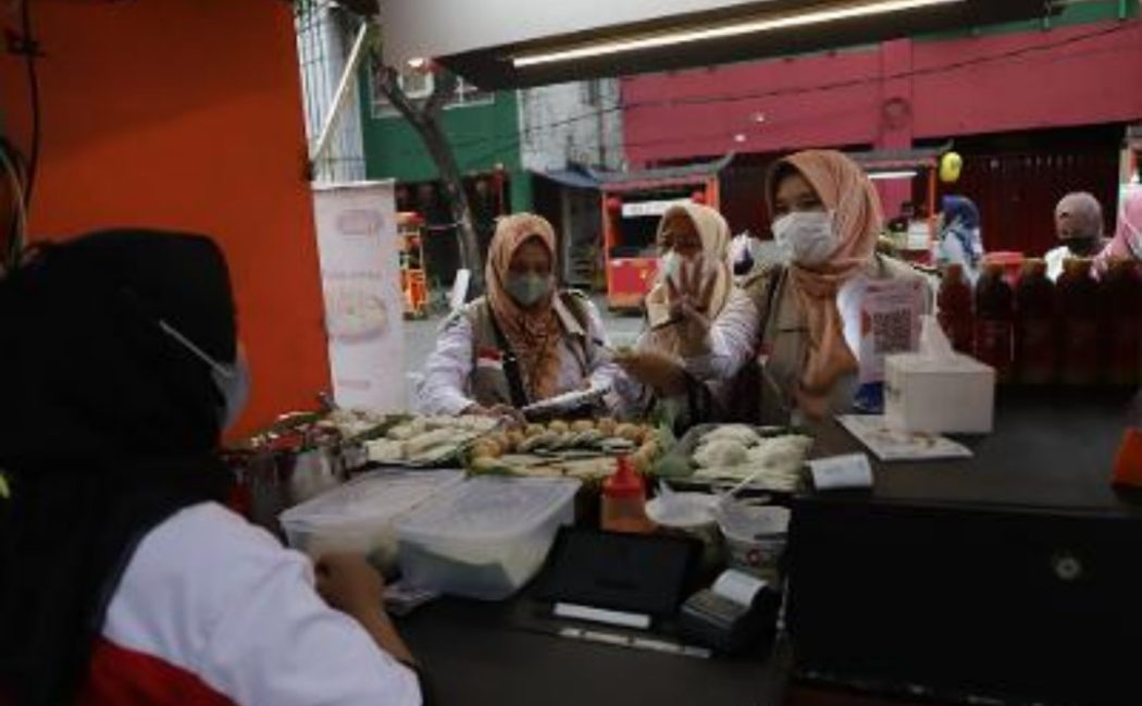 Tim dari Balai Besar Pengawas Obat dan Makanan Surabaya saat melakukan pengambilan sampel makanan di Kya-Kya Kembang Jepun.