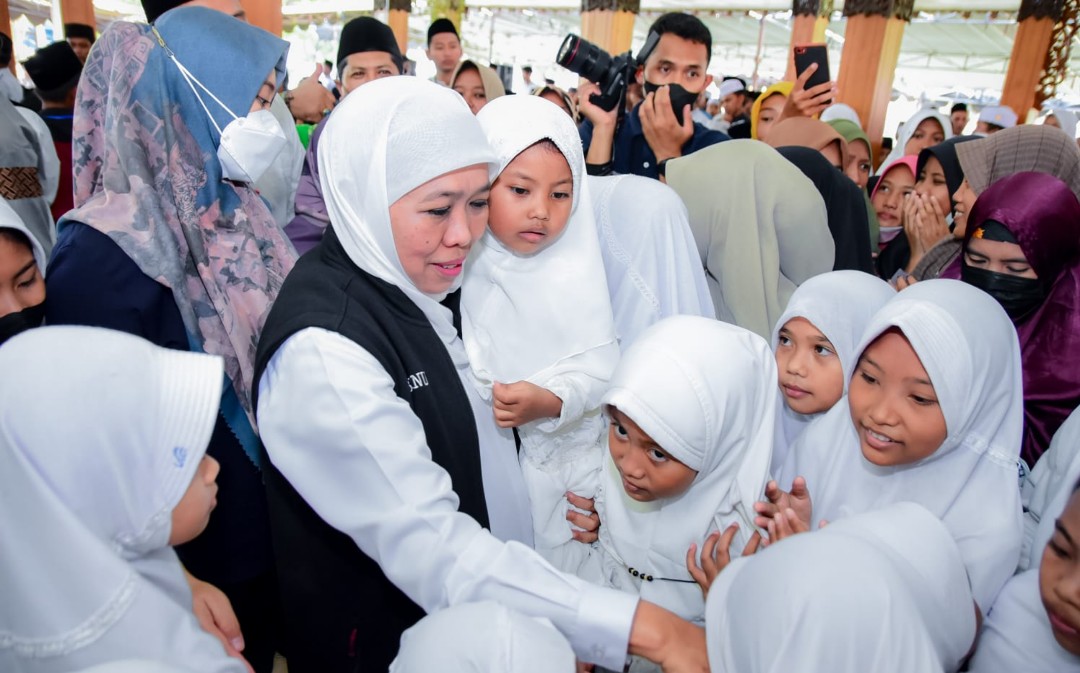 Keceriaan anak-anak semakin membuncah tatkala Khofifah mengajak mereka bersalawat bersama. Di hadapan anak-anak tersebut gubernur perempuan pertama di Jatim ini juga berpesan agar senantiasa semangat belajar dan mengaji agar kelak bisa meraih cita-cita.