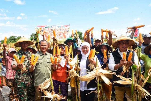 Gubernur Jawa Timur Khofifah Indar Parawansa dalam salah satu kegiatan panen jagung.