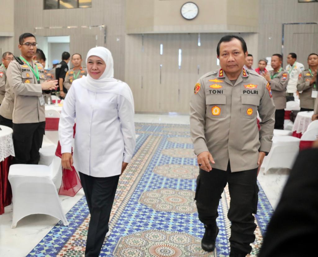 SURABAYATODAY.ID, SURABAYA – Gubernur Jawa Timur Khofifah Indar Parawansa bersama jajaran Forkopimda Jatim menggelar Rakor Lintas Sektoral Operasi Ketupat Semeru 2023 di Gedung Mahameru Polda Jatim, Rabu (12/4). Hal tersebut dilakukan untuk menciptakan suasana di Jatim tetap aman, kondusif, sehat dan lancar.
