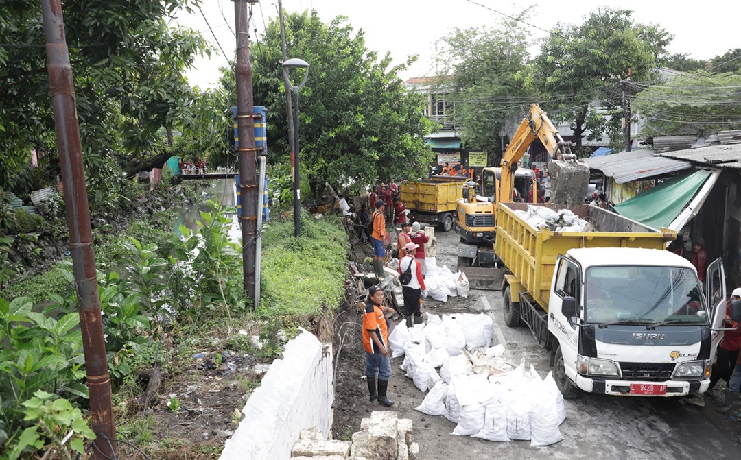 Kepala DSDABM Kota Surabaya Lilik Arijanto mengatakan jebolnya pelapis tanggul tersebut terjadi saat hujan deras mengguyur kawasan Kembang Kuning. Pelapis tanggul yang jebol itu sekitar 20 meter. “Pelapis tanggul itu sudah waktunya rekondisi ya. Di lokasi, kami terjunkan satu unit alat berat dan 40 orang satgas,” kata Lilik.