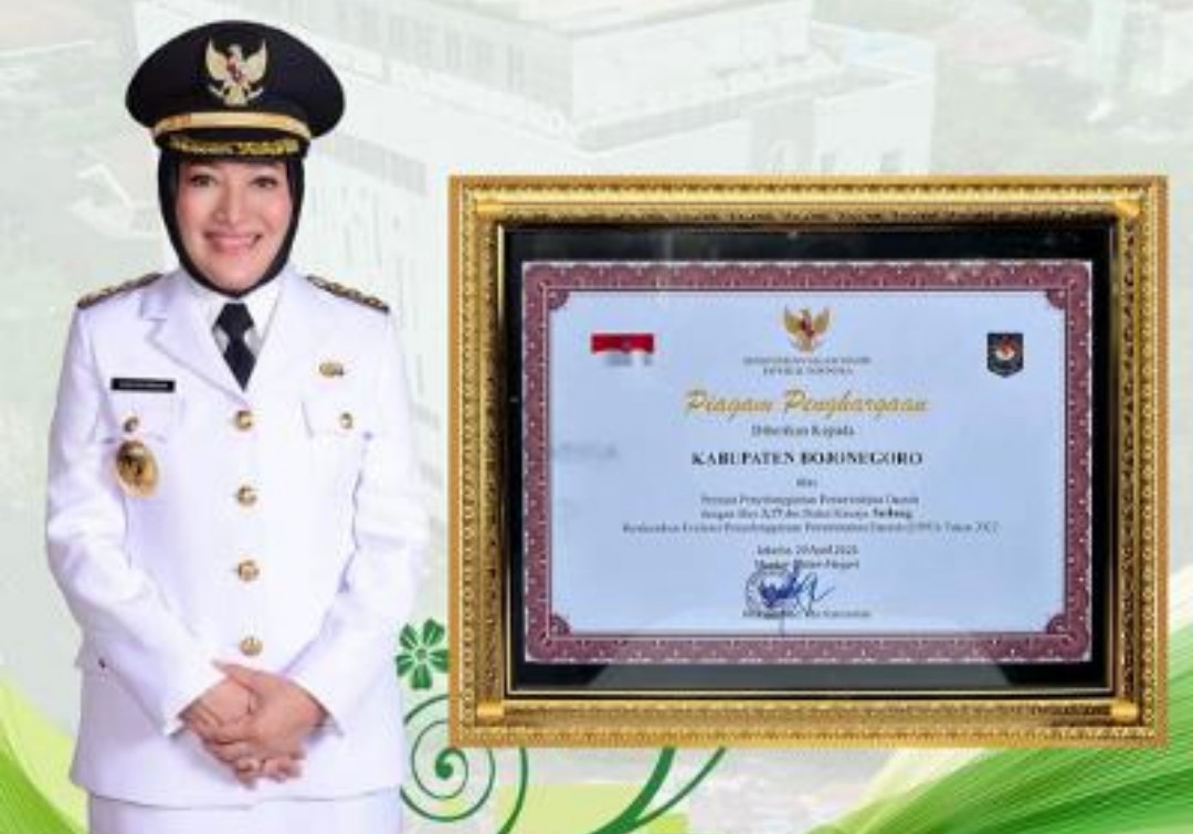 Penerimaan penghargaan diberikan oleh Menteri Dalam Negeri Muhammad Tito Karnavian kepada Bupati Bojonegoro Anna Mu’awanah yang diwakili oleh Staf Ahli Bupati Bidang Kemasyarakatan dan SDM Kabupaten Bojonegoro Elzadeba Agustina.