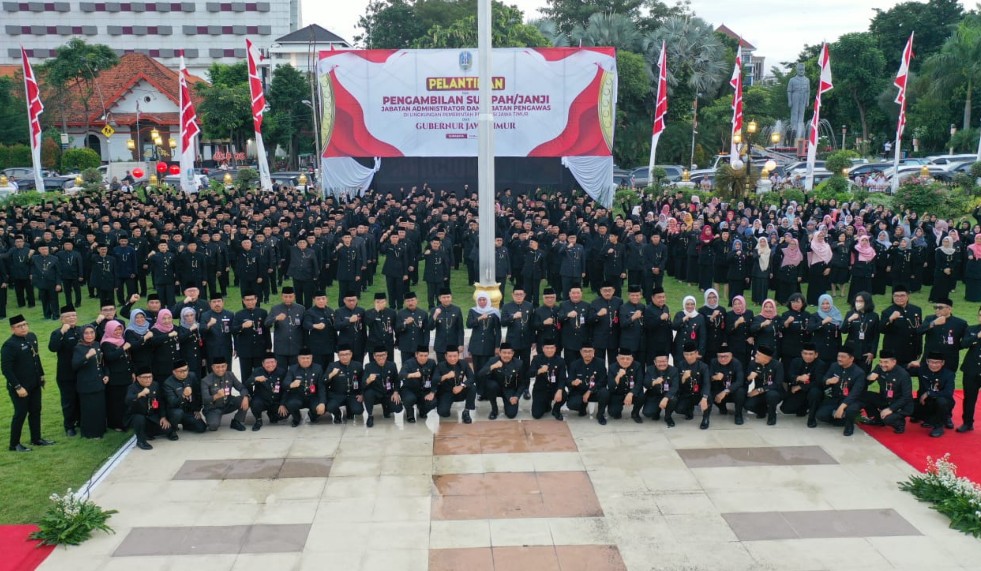 “Apa yang tadi sudah saudara ucapkan pada sumpah / janji adalah menjaga integritas. Bagaimana integritas sebagai ASN dan sebagai keluarga besar Pemprov Jawa Timur. Ini semua harus kita jaga dan terus bisa dibangun, termasuk memberikan dedikasi terbaik sebagaimana core values ASN ‘BerAKHLAK’,” katanya.