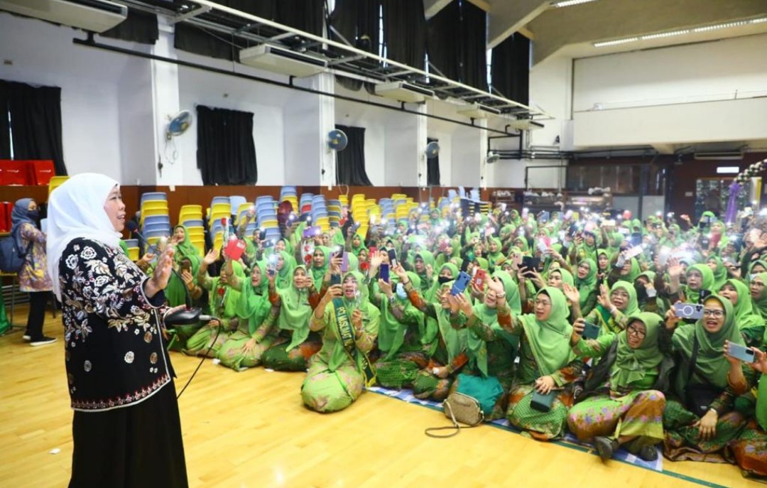 Gubernur Jawa Timur Khofifah Indar Parawansa dalam Harlah Pimpinan Cabang Istimewa (PCI) Muslimat NU Hong Kong-Macao ke-5 dan Pelantikan Pimpinan Anak Cabang Istimewa (PACI) Muslimat NU se-Hong Kong-Macao di Islamic Kasim Tuet Memorial Collage Hong Kong.