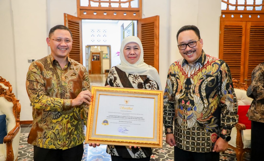 Juga turut diserahkan penghargaan kepada Badan Pengembangan Sumber Daya Manusia Prov Jatim sebagai Lembaga Penyelenggara Pendidikan Dan Pelatihan Kearsipan (LP3K) yang turut diterima langsung oleh Gubernur Khofifah