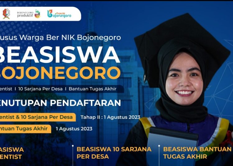 SURABAYATODAY.ID, BOJONEGORO – Pemerintah Kabupaten (Pemkab) Bojonegoro melalui Dinas Pendidikan kembali membuka pendaftaran Beasiswa Pemkab Bojonegoro tahap II Tahun 2023. Beasiswa ini khusus bagi warga ber Nomor Induk Kependudukan (NIK) Bojonegoro.