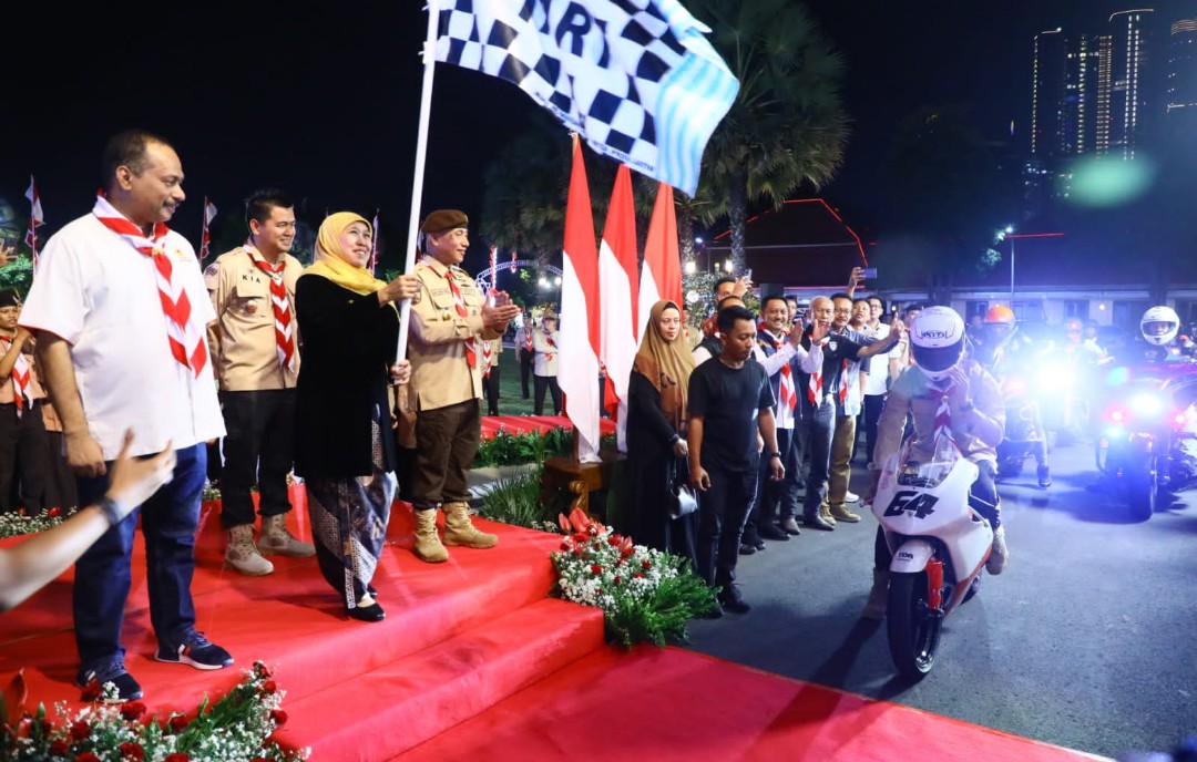 Pelepasan dilakukan secara simbolik dengan pengibaran bendera start oleh Gubernur Khofifah yang kemudian diikuti oleh Mario yang mengendarai motor melewati podium.
