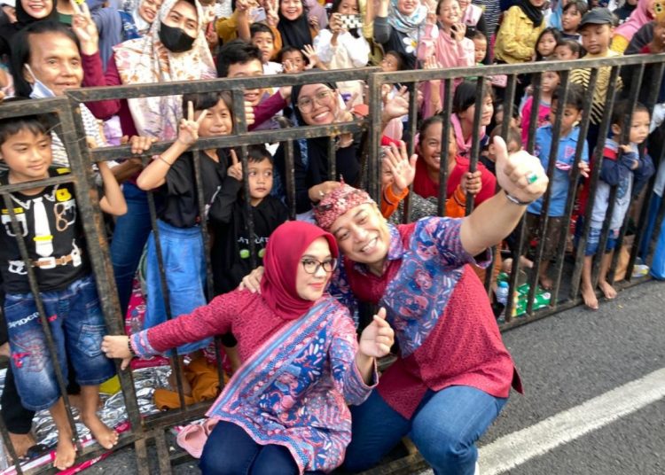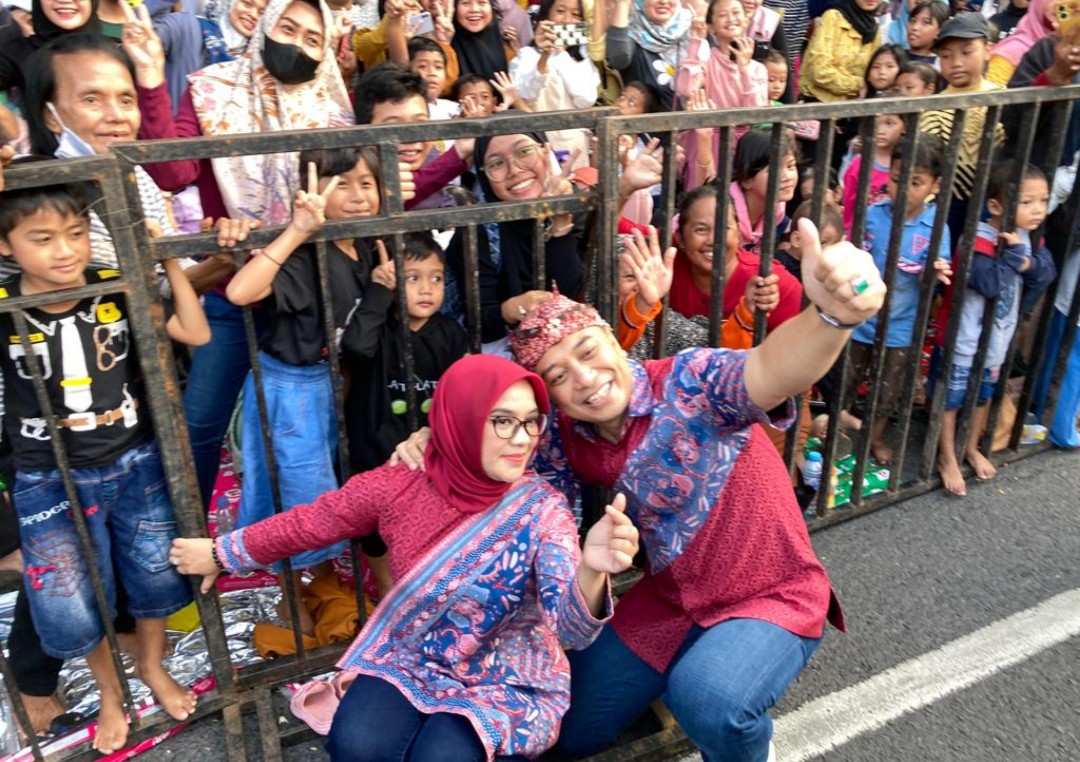 Turun dari Kereta Kencana, Eri Cahyadi-Rini Indriyani Sapa Warga