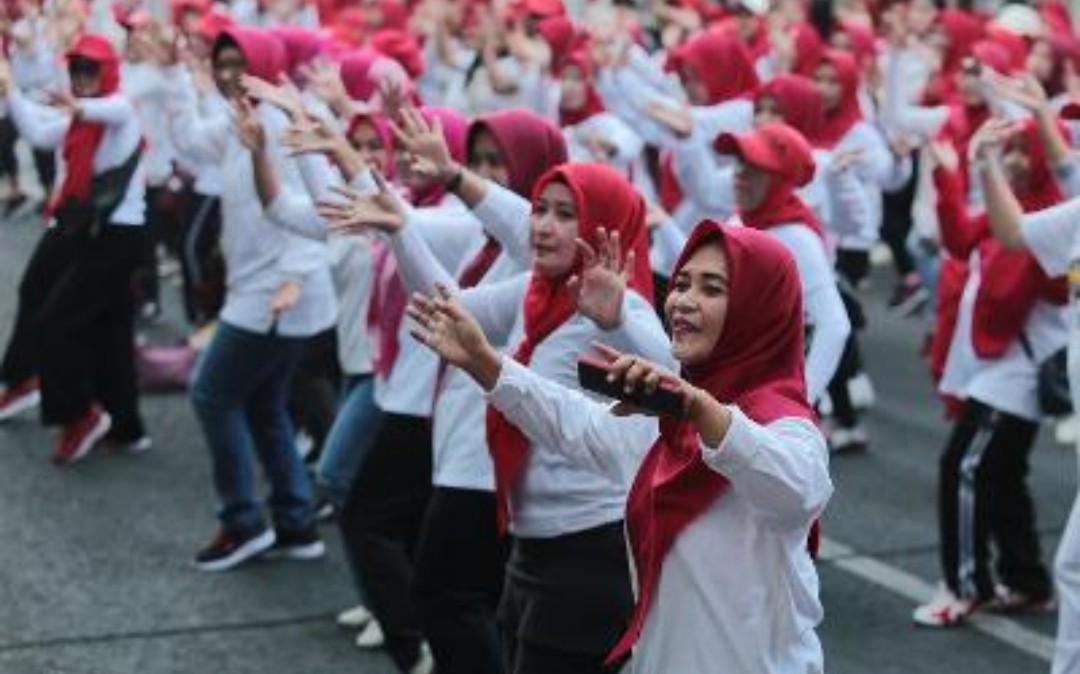 Ada Gebyar Senam Perwosi, Jalan Tunjungan Surabaya Berubah Jadi Merah Putih