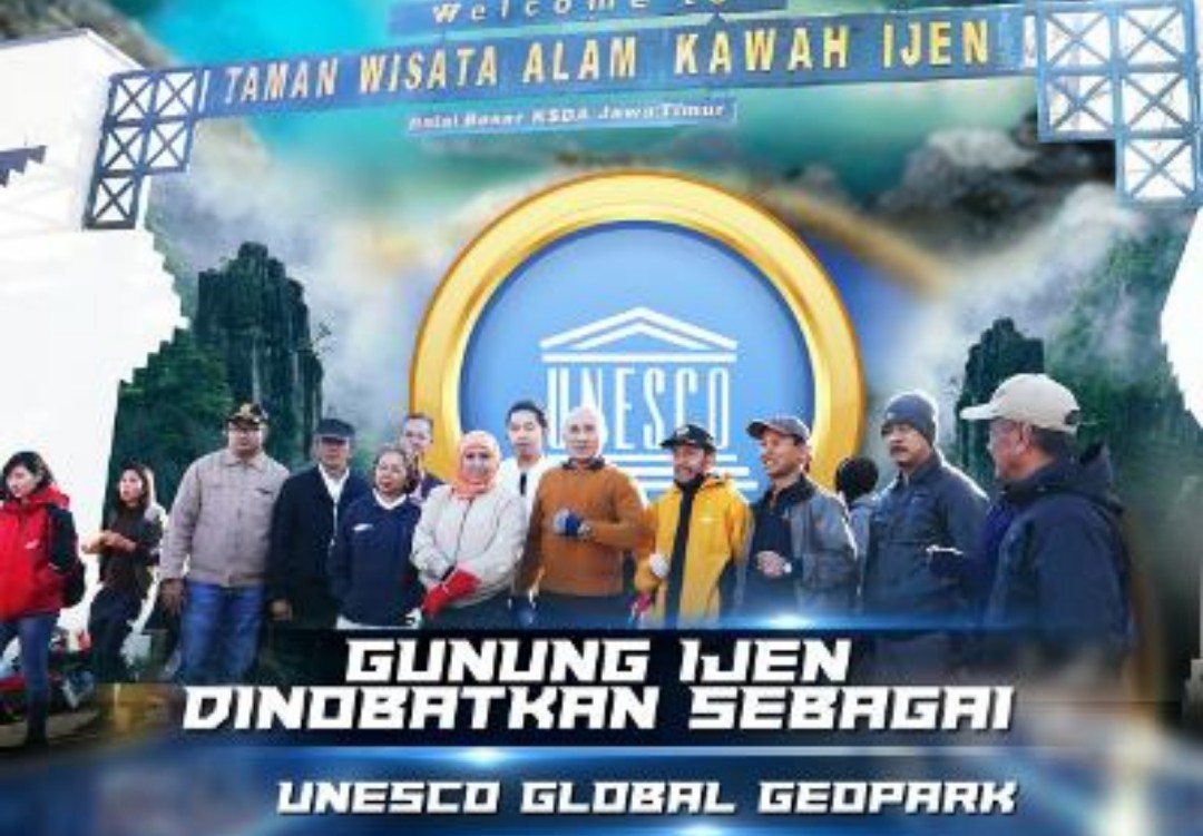 SURABAYATODAY.ID, SURABAYA – Kawasan Wisata Gunung Ijen dinobatkan sebagai Unesco Global Geopark (UGGp). Penetapan taman wisata geologi di Kabupaten Banyuwangi dan Bondowoso itu sebagai UGGp, dilakukan dalam sidang tahunan di Markas UNESCO di Paris, Prancis, Rabu 24 Mei 2023 lalu.